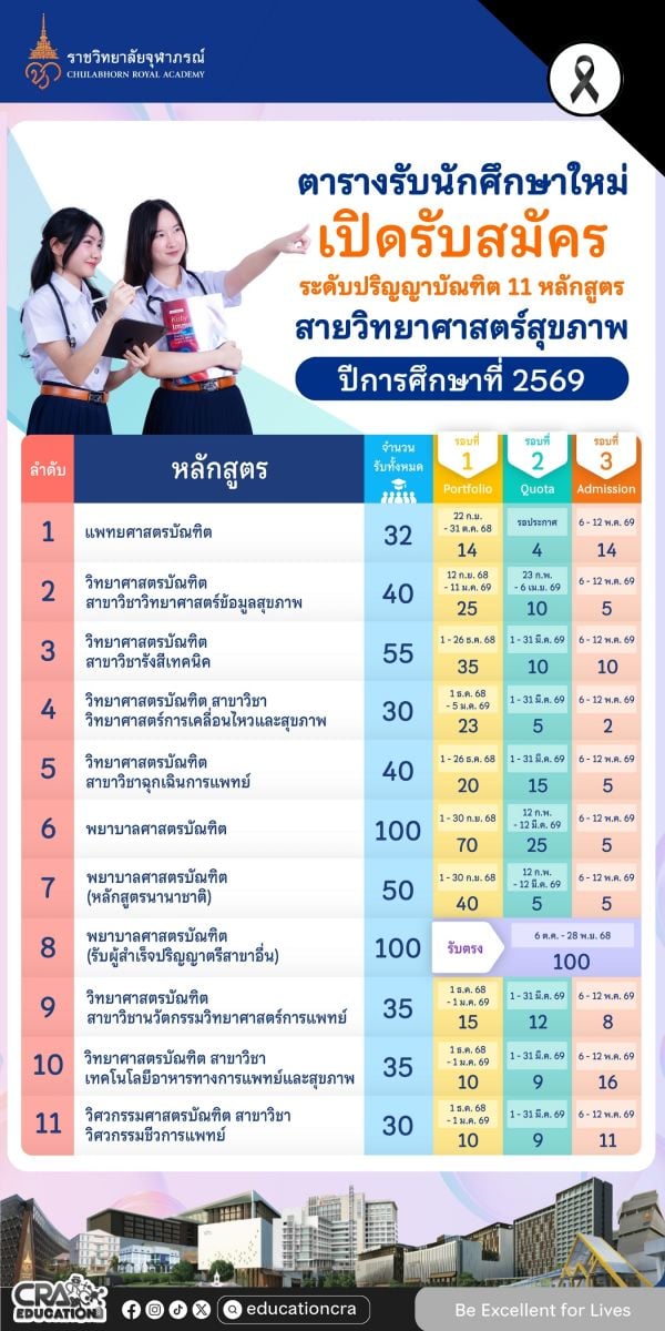 ราชวิทยาลัยจุฬาภรณ์ ปี 2569 มาแล้ว!