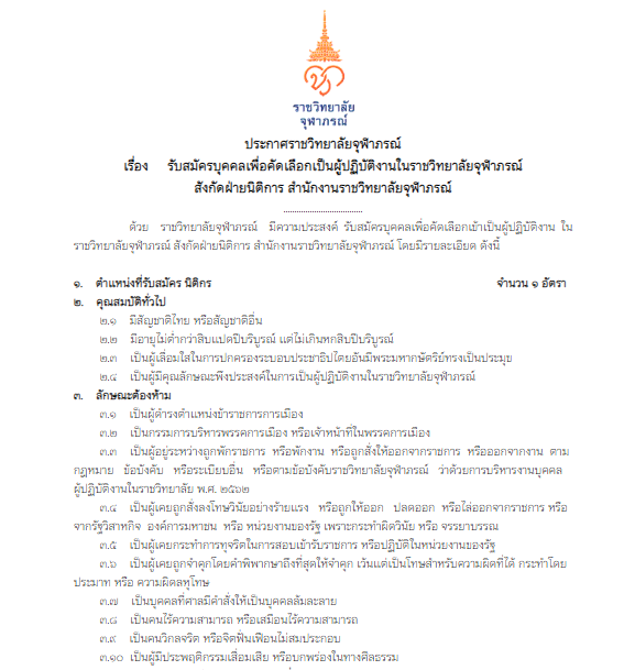 ตำแหน่ง นิติกร สังกัด ฝ่ายนิติการ สำนักงานราชวิทยาลัยจุฬาภรณ์ 29 ก.ย. 2565 FacebookTwitterLine ประกาศรับสมัคร ตำแหน่ง นิติกร จำนวน 1 อัตราDownload