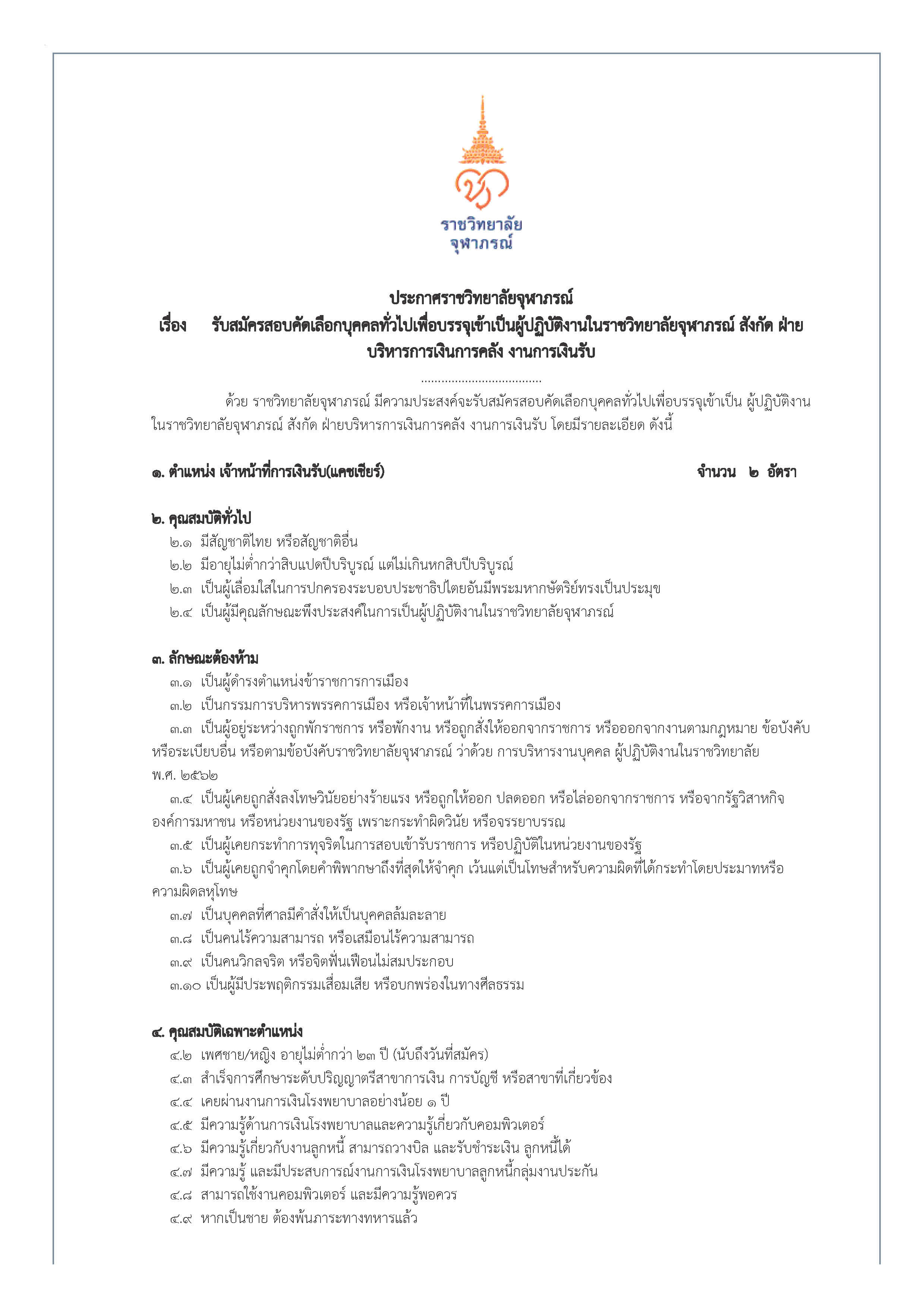 ตำแหน่ง เจ้าหน้าที่การเงินรับ (แคชเชียร์) สังกัด ฝ่ายบริหารการเงินการคลัง งานการเงินรับ 3 ก.พ. 2563 FacebookTwitterLine เจ้าหน้าที่การเงินรับ(แคชเชียร์) แบบฟอร์มการสมัคร