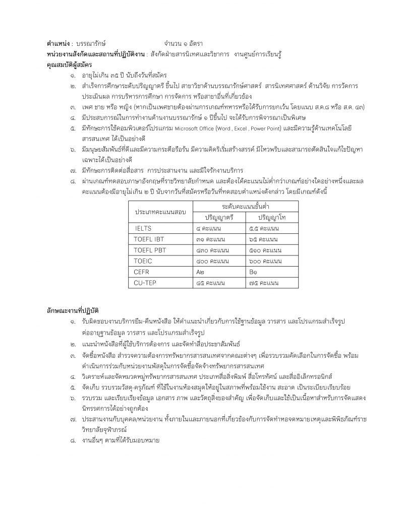 เจ้าหน้าที่บริหารงานทั่วไป / นักวิชาการศึกษา / บรรณารักษ์ / ช่างโยธา / วิศวกรโยธา 19 ม.ค. 2565 FacebookTwitterLine รับสมัครบุคคลเพื่อคัดเลือกเป็นผู้ปฏิบัติงานในราชวิทยาลัยจุฬาภรณ์Download