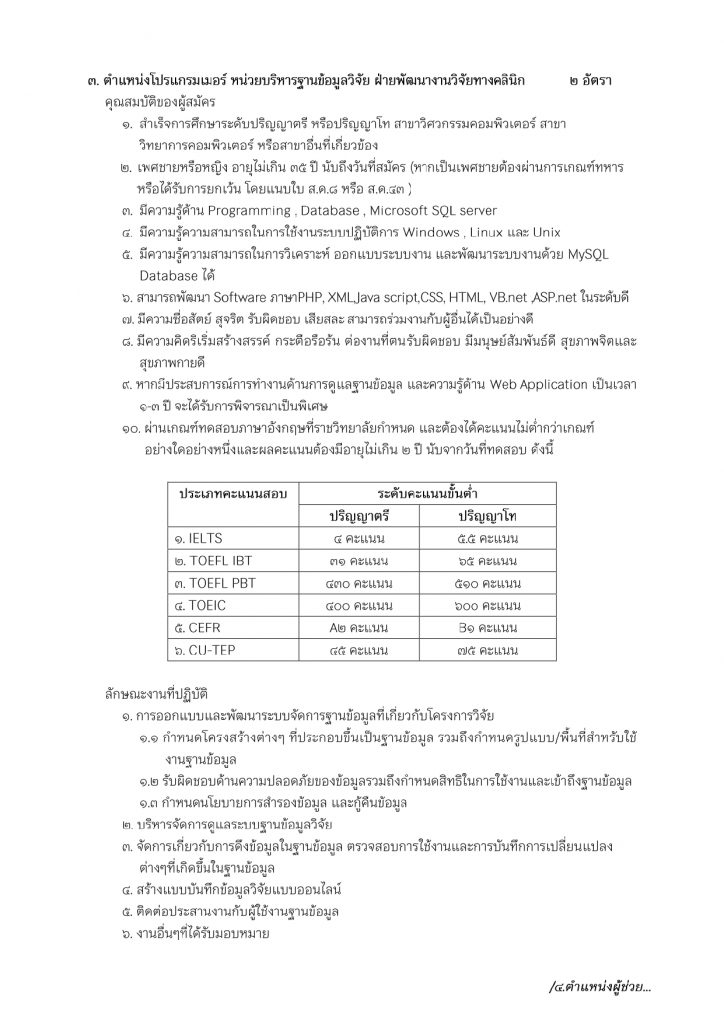 ตำแหน่งนักวิทยาศาสตร์ ,ตำแหน่งนักชีวสถิติการแพทย์, ตำแหน่งโปรแกรมเมอร์ ,ตำแหน่งผู้ช่วยวิจัย , ตำแหน่งนักวิจัย สังกัดศูนย์การเรียนรู้และวิจัยเฉลิมพระเกียรติ ๖๐ พรรษาเจ้าฟ้าจุฬาภรณ์ ราชวิทยาลัยจุฬาภรณ์ 8 เม.ย. 2565 FacebookTwitterLine แบบฟอร์มสมัครงานDownload ประกาศรับสมัครDownload