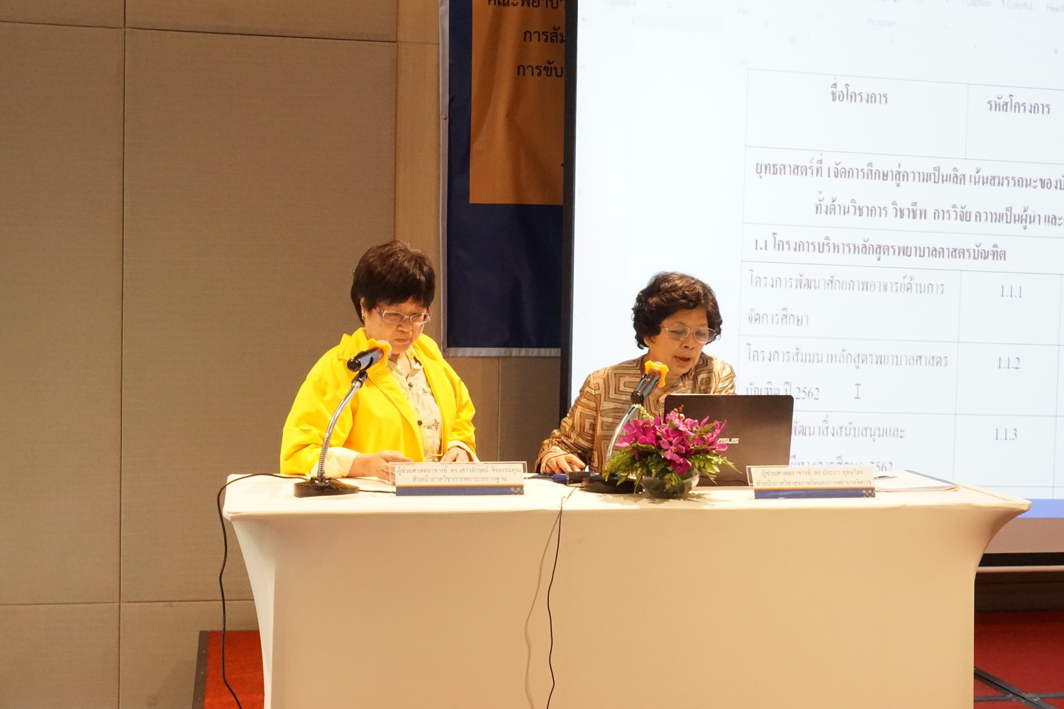โดย รองศาสตราจารย์ ดร.ทัศนา บุญทอง คณบดีคณะพยาบาลศาสตร์ เป็นประธานเปิดโครงการ และบรรยายเกี่ยวกับการขับเคลื่อนคณะพยาบาลศาสตร์มุ่งสู่ผลลัพธ์ทางการศึกษาและการบริหารจัดการที่เป็นเลิศ กิจกรรมครั้งนี้มีผู้เข้าร่วมจำนวน 50 คน ประกอบด้วยผู้บริหาร อาจารย์ และเจ้าหน้าที่สายสนับสนุน ผู้เข้าร่วมสัมมนาทุกคนได้มีส่วนร่วมในการวางแผนการดำเนินงานของปีงบประมาณ 2563 เพื่อพัฒนางานด้านการเรียนการสอน การวิจัย และพัฒนานักศึกษาตามเป้าหมายของสถาบัน