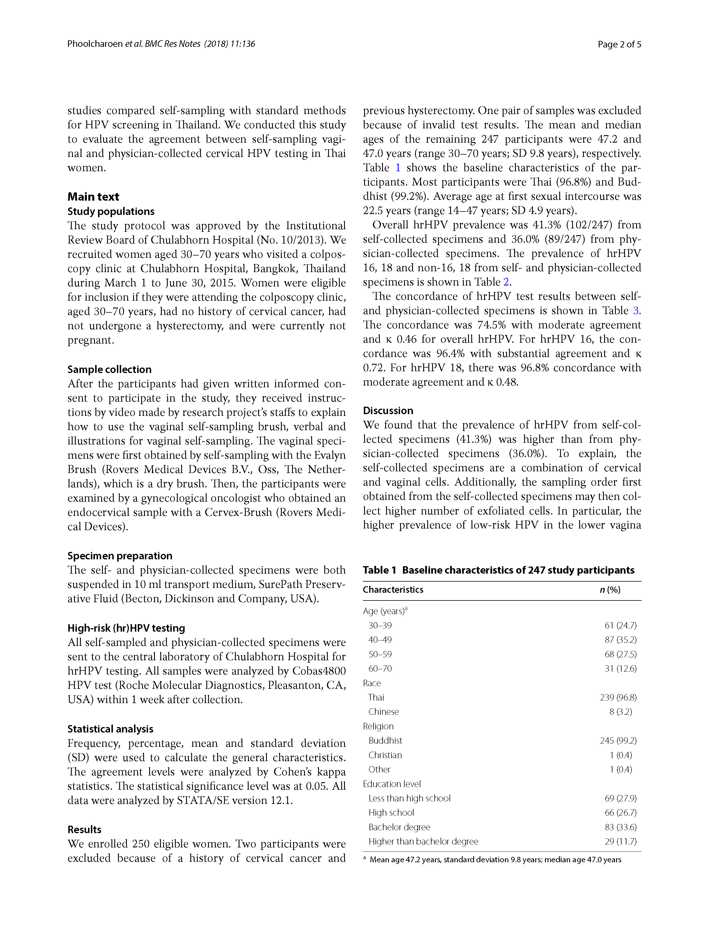 Agreement of self – and physician‑collected samples for detection of high‑risk human papillomavirus infections in women attending a colposcopy clinic in Thailand 28 ก.พ. 2561 FacebookTwitterLine ดาวน์โหลดเอกสาร