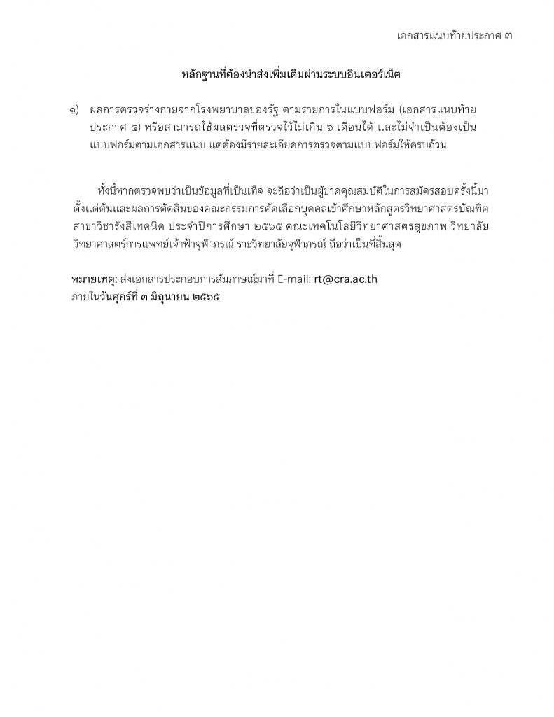 ประกาศรายชื่อผู้มีสิทธิ์สอบสัมภาษณ์ เพื่อเข้าศึกษาหลักสูตรวิทยาศาสตรบัณฑิต สาขาวิชารังสีเทคนิค ประจำปีการศึกษา ๒๕๖๕ รอบ ๔ 14 มิ.ย. 2565 FacebookTwitterLine รายชื่อผู้มีสิทธิ์สอบสัมภาษณ์ เพื่อเข้าศึกษาหลักสูตรวิทยาศาสตรบัณฑิต สาขาวิชารังสีเทคนิคDownload